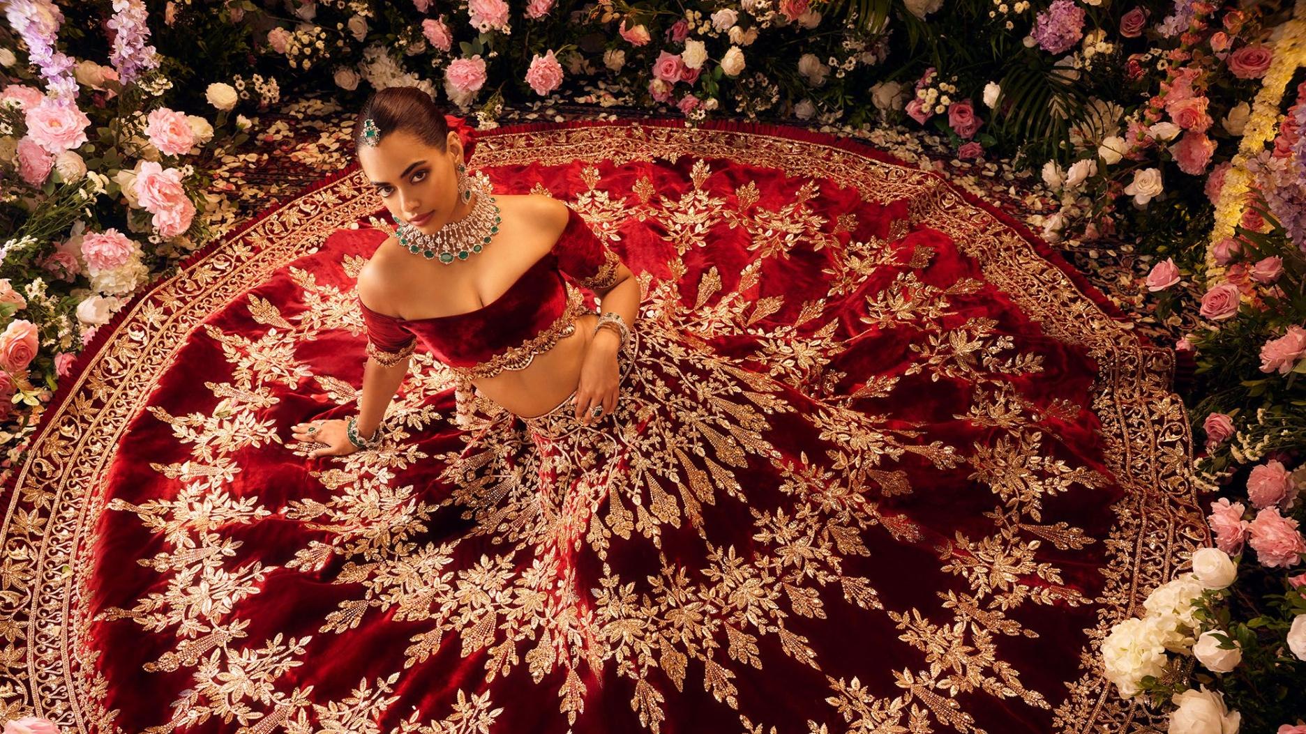 A maestro of glamour, Manish Malhotra’s bridal creations blend contemporary silhouettes with traditional craftsmanship, always sparkling with unabashed luxury.